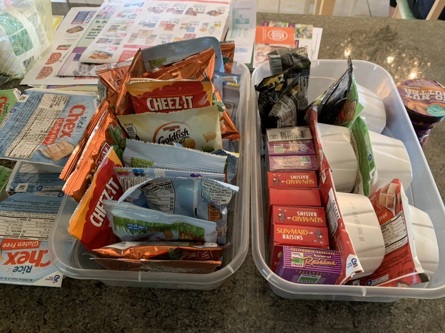 日本だったら、おにぎりが配られるようなところを、さすがアメリカ…レーズンやスナックが入っていますね。